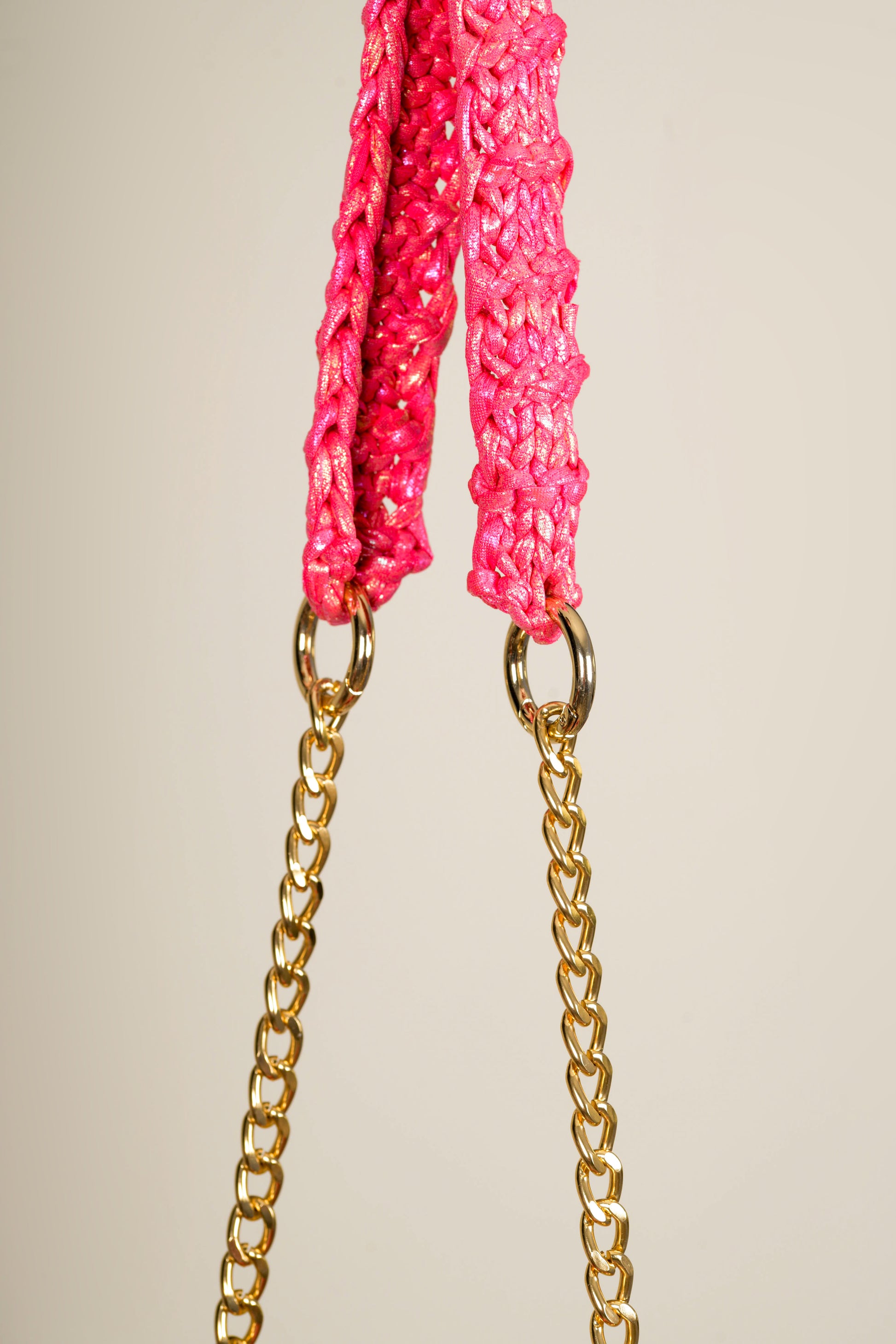 Borsa Caramella unisce eleganza e praticità con la sua tracolla in catenella dorata, perfetta per un tocco di stile raffinato. Leggera e resistente, grazie alla fodera interna in neoprene, garantisce durata senza rinunciare al comfort. Il rivestimento esterno in cotone è rimovibile, offrendo versatilità e facilità di pulizia per adattarsi a ogni occasione.
