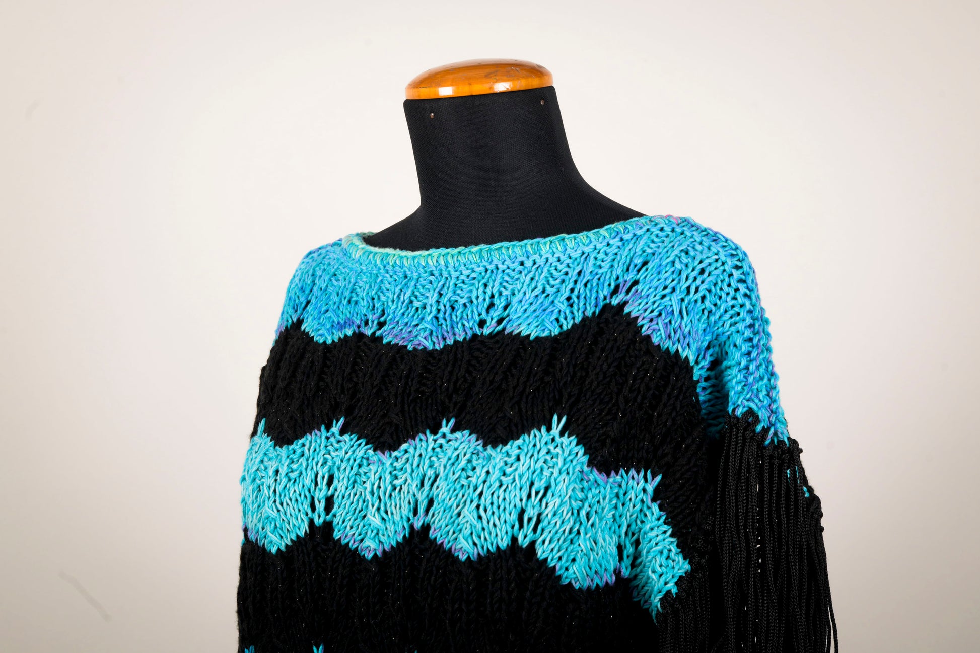 Il capo è arricchito da frange cadenti subito dopo la manica, che aggiungono movimento e un tocco boho-urban al look 🌙