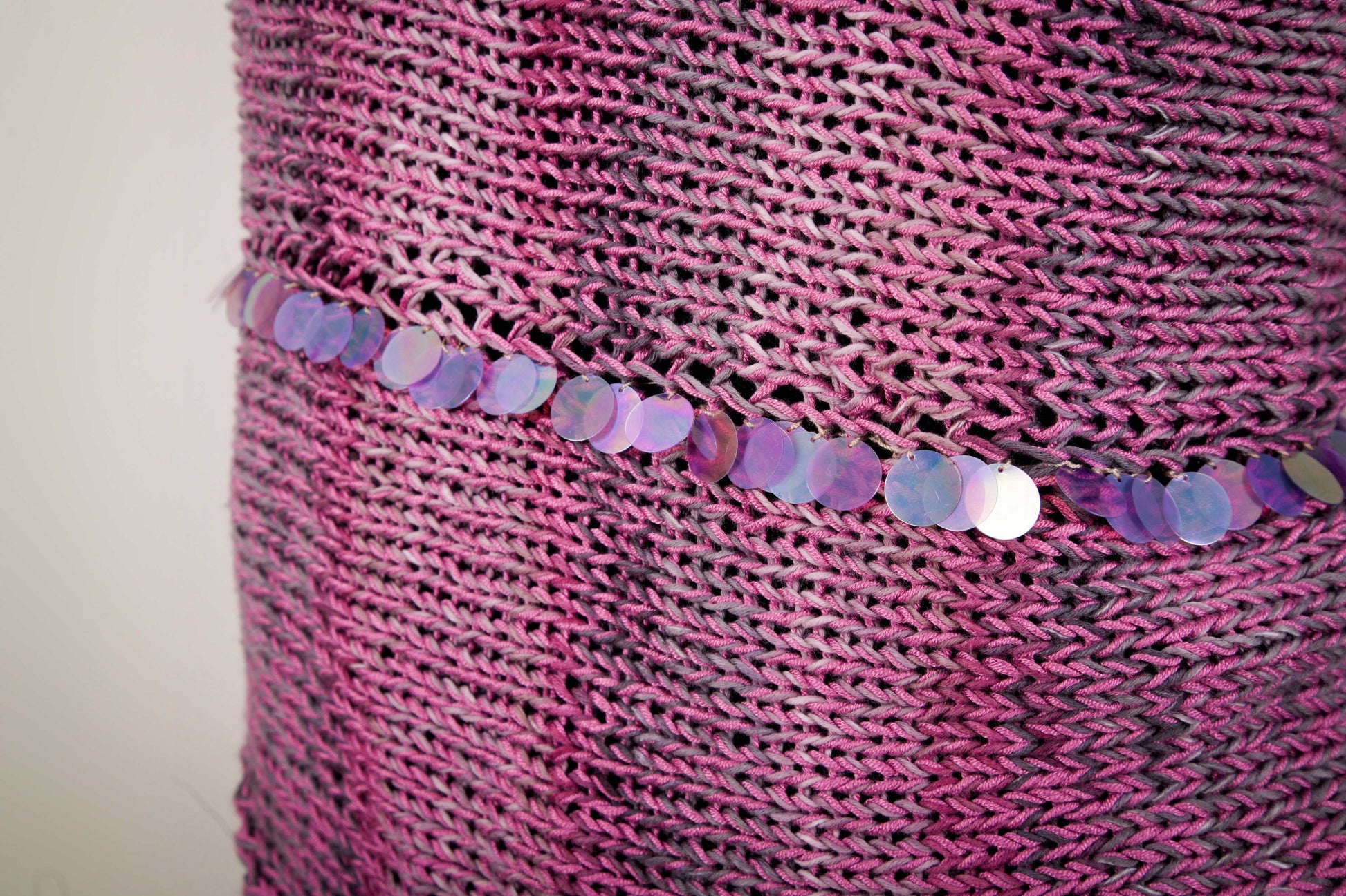 Top Rosa Glam di media lunghezza con vestibilità comoda ma aderente nei punti giusti. È composto da un'allacciatura dietro al collo che lascia la schiena scoperta, esaltando la femminilità in modo sensuale ma raffinato e la larghezza si regola in vita con un cordoncino. Il punto vita si compone di paillettes che donano al capo un effetto luminoso. Per questo top abbiamo usato un filato in 100% cotone bio e seta: naturale, leggero e traspirante.